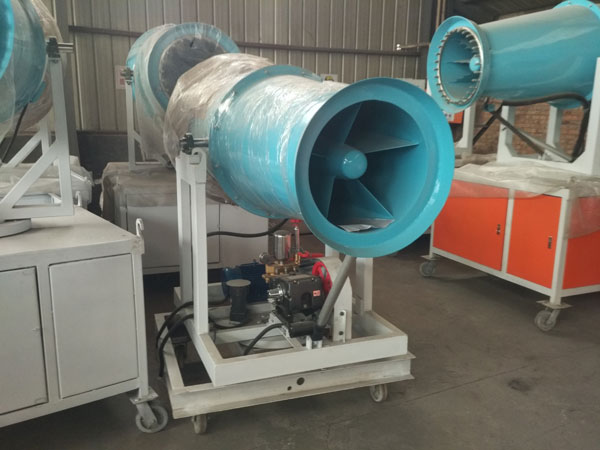 雾炮机广泛应用于冶金、化工、水泥、热电、石油、机械等各行业部门,对保护环境促进生产起着积极的作用。但雾炮机运行时产生的噪音却严重的影响环境的安静,它不但损坏人的听力,防碍车间内正常的语言交流,给安全生产带来一定影响。所以雾炮机的工作噪音必需要控制在85分贝以内,而雾炮机产生噪音的原因是风机,高压泵的